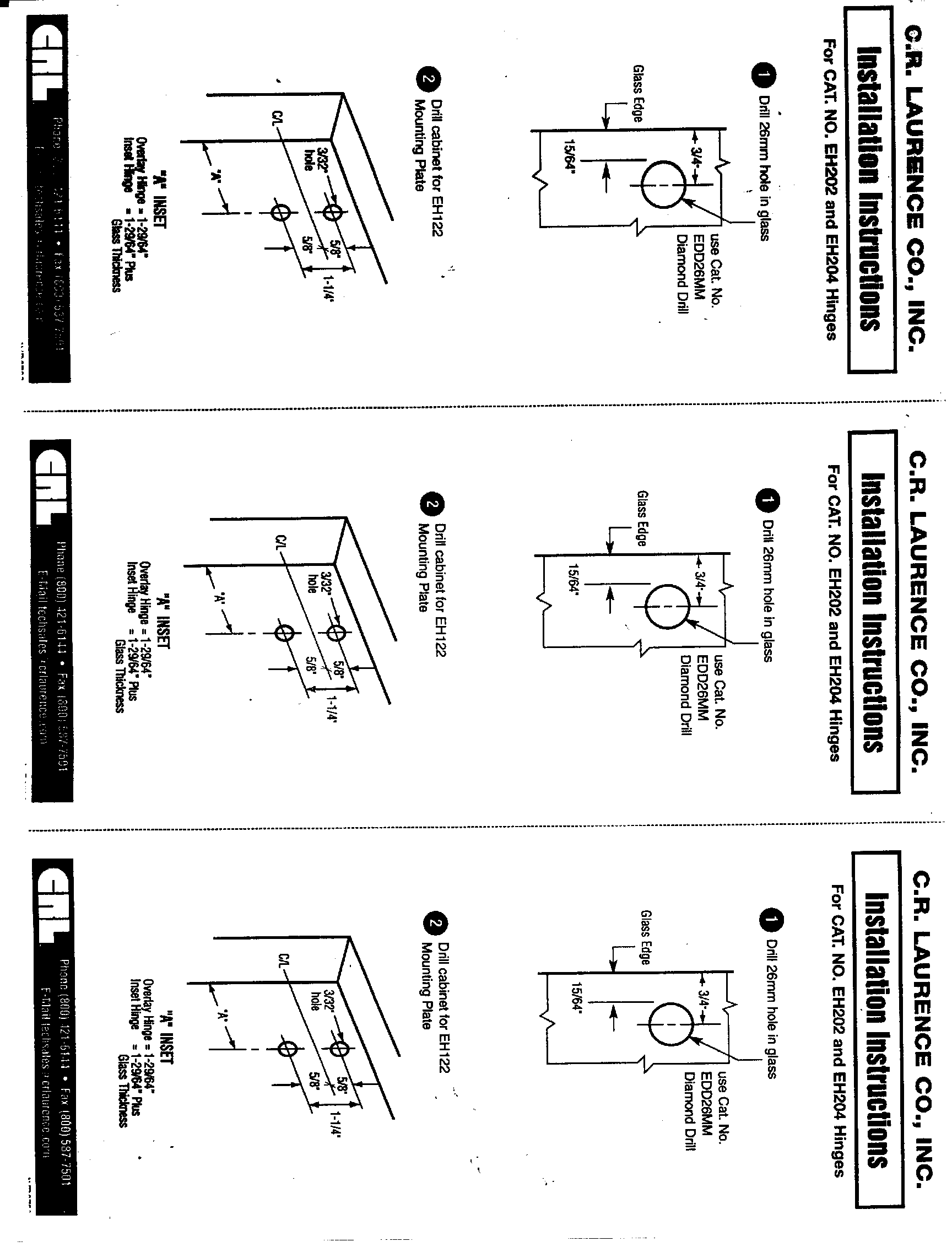 CRL Inset Hinge allows for flush mounting of glass in cabinet opening. Mounts to EH122 Mounting Plate.